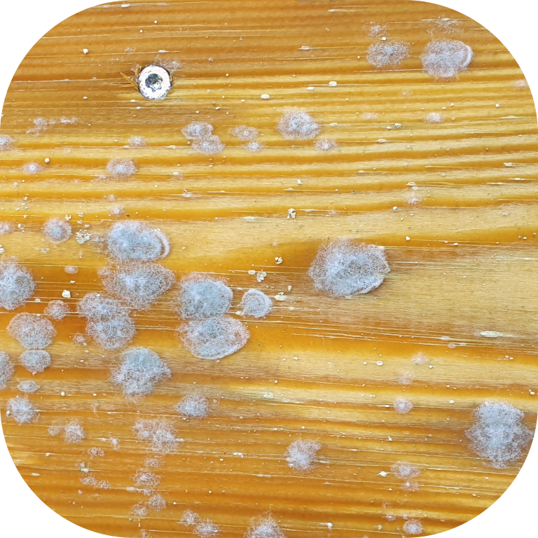 Diese oberflächlichen Schimmelflecken haben keinen Einfluss auf die Qualität des Holzes.